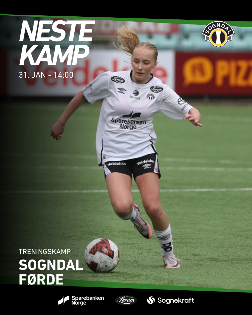 Det er gratis inngang, og kampen blir spelt inne i Sognahallen skjerma frå den verste vinterkulda. Om det allikevel skulle bli kaldt sel me mykje godt i kiosken, og ein får både varm og kald drikke med noko godt å bite i. Det er lite som slår live fotball på ein laurdags formiddag, og me håpar å sjå dykk i Sognahallen! Velkommen!
